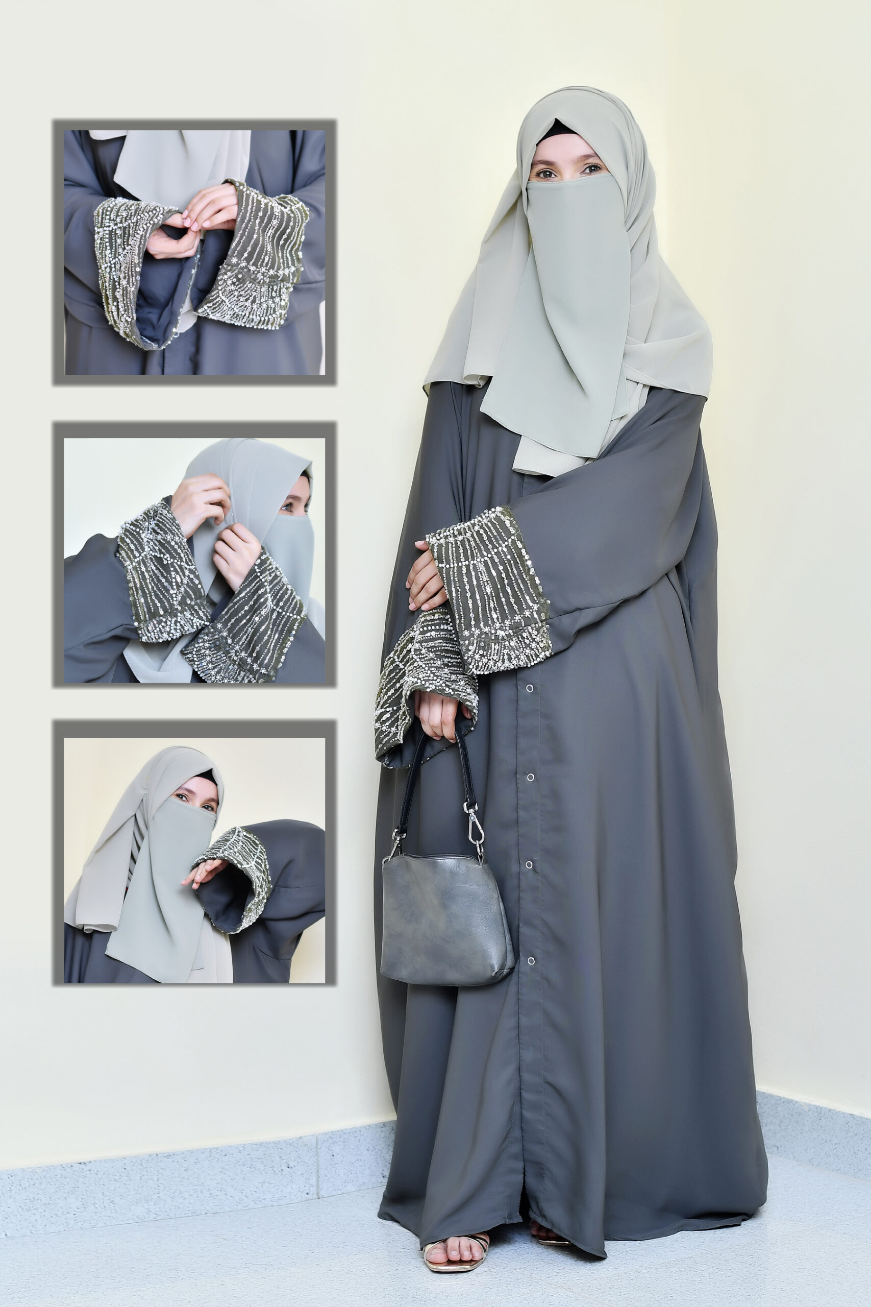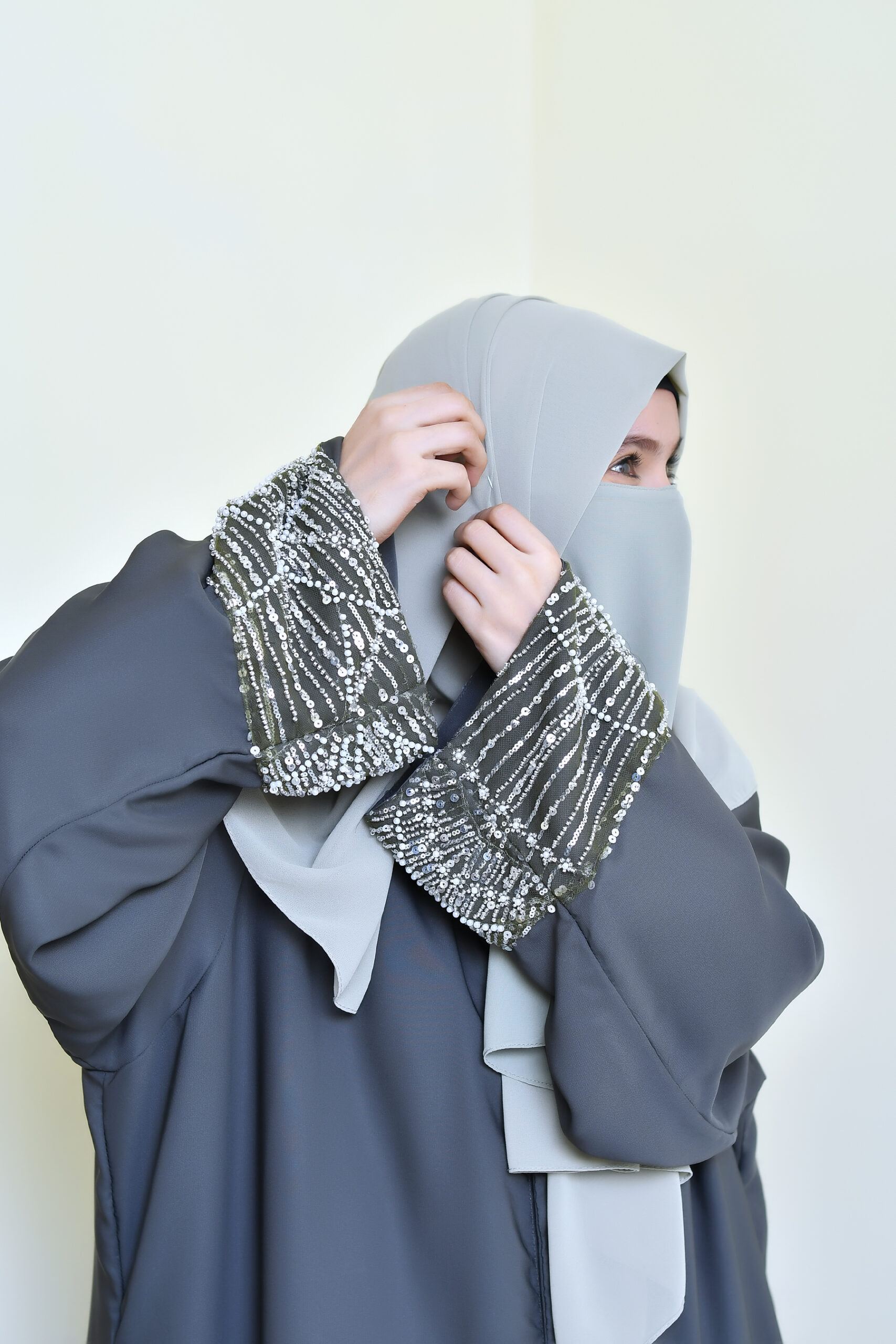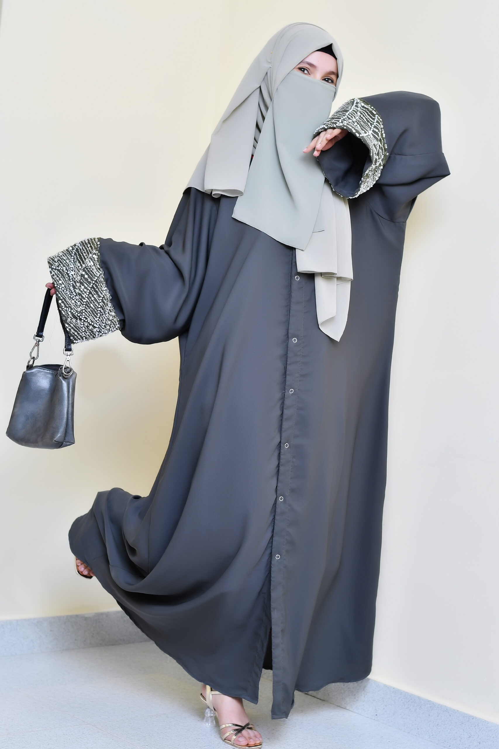 Our abayas are crafted from the finest Nida fabric, ensuring a soft, breathable feel and an elegant drape that lasts all day.