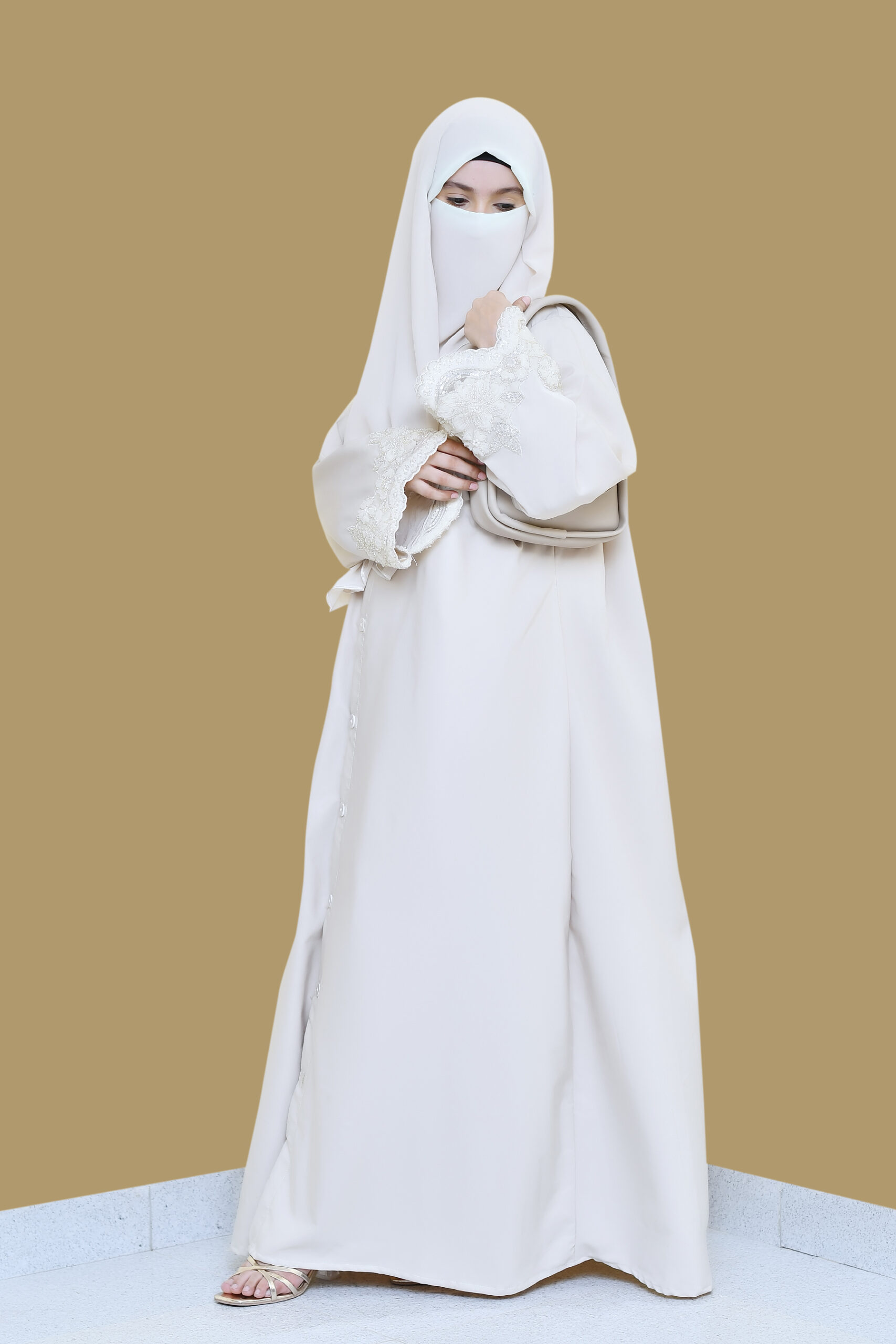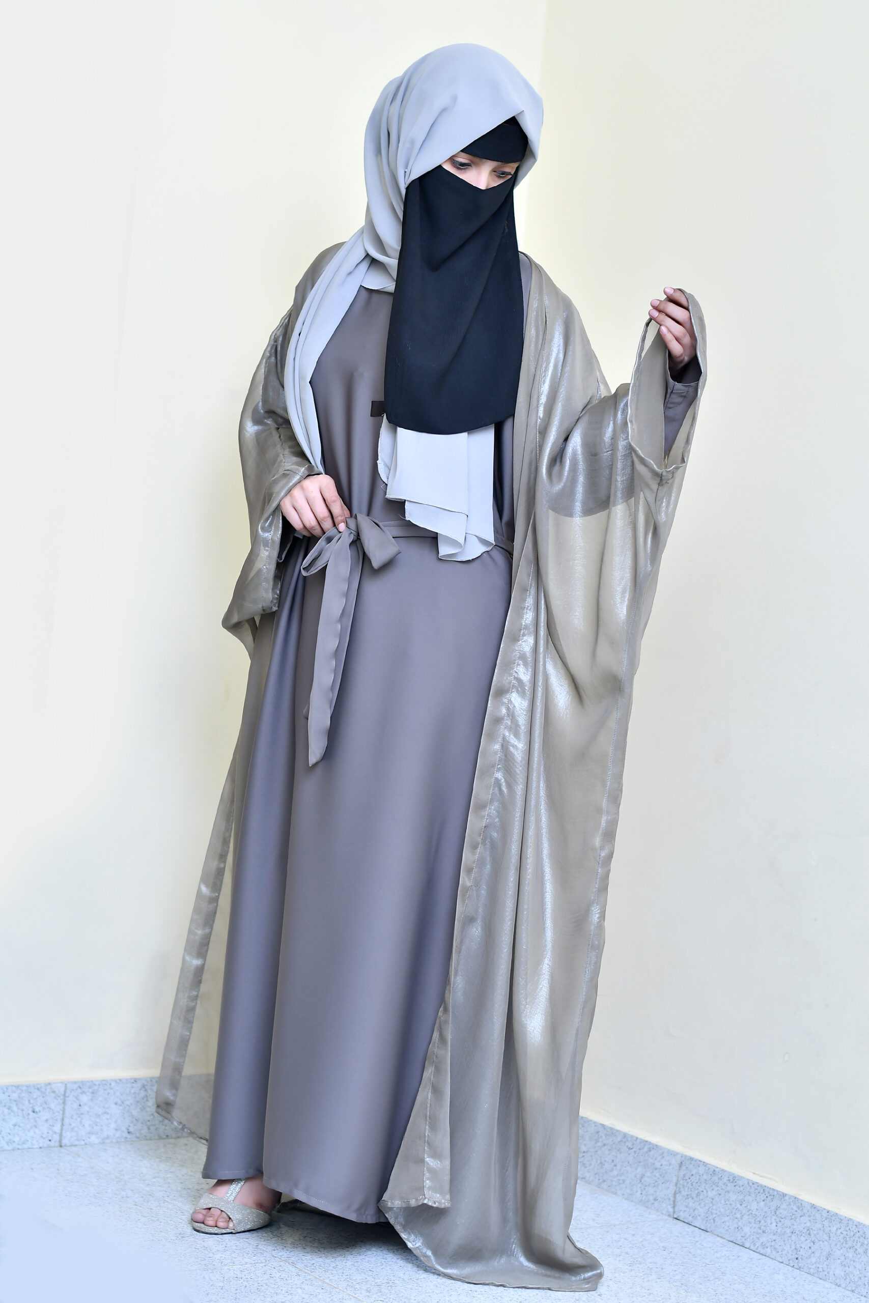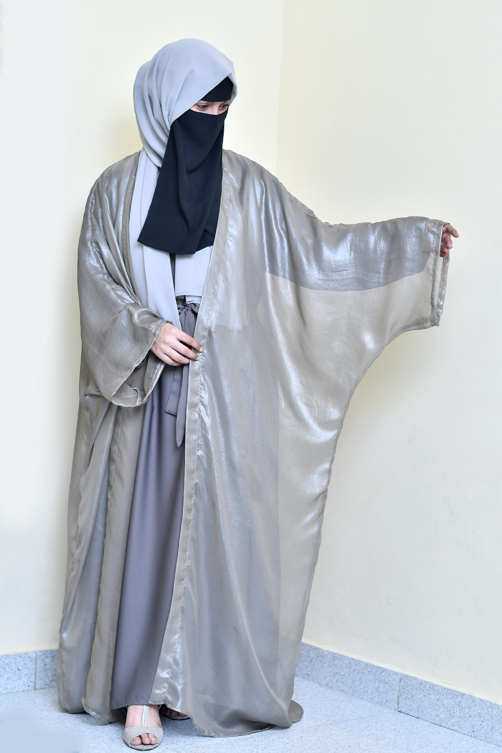 Our abayas are crafted from the finest Nida fabric, ensuring a soft, breathable feel and an elegant drape that lasts all day.
